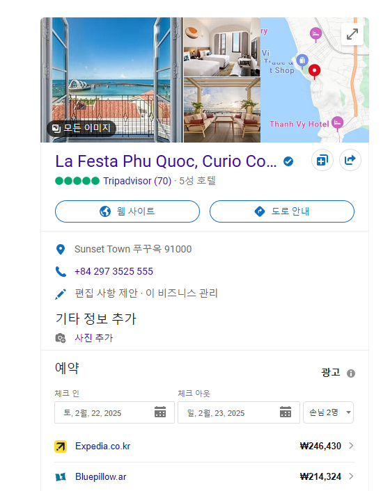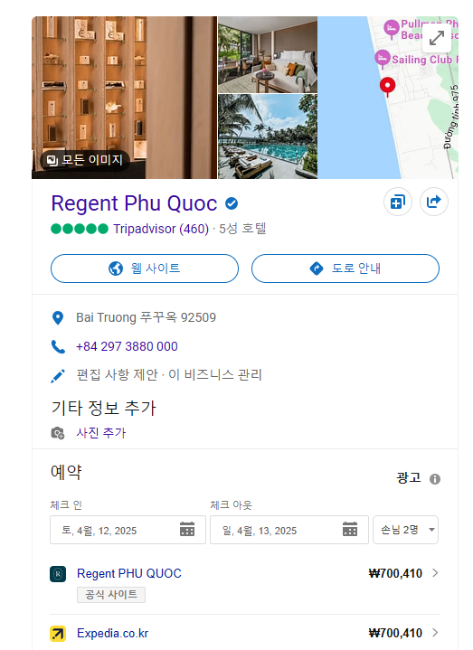 그리고 왕년에 푸꾸옥 1등 리조트였던 JW메리어트와의 가격 격차가 10만원대로 밖에 나지 않는다.