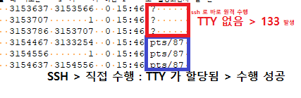 성공하는 경우는 TTY(TeleTYpewriter) 를 배정받고 있음을 확인할 수 있음
